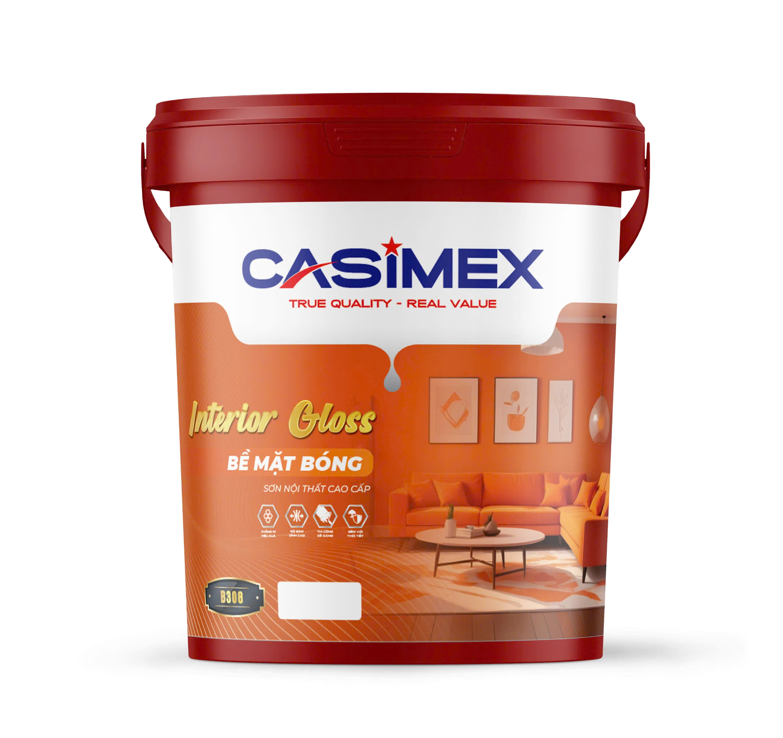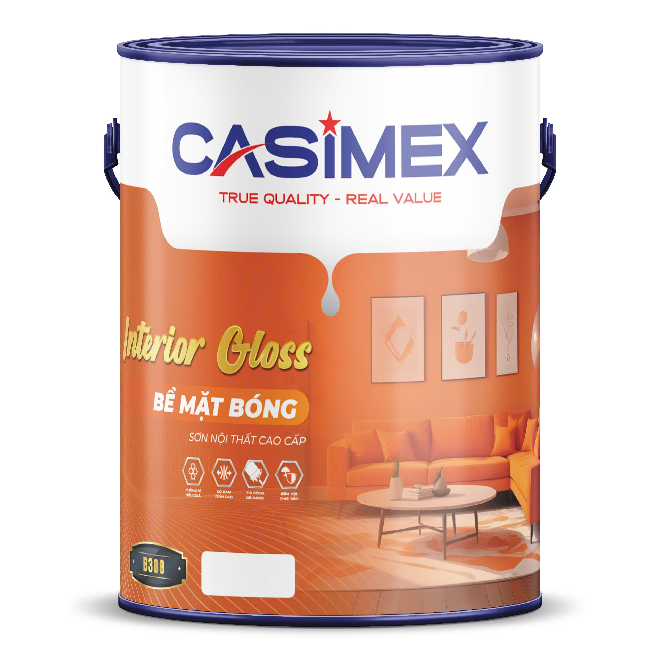- Sơn phủ 2 lớp sơn bóng nội thất cao cấp CASIMEX
