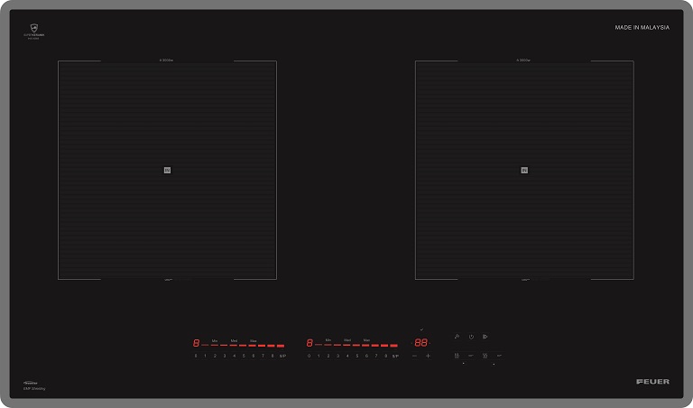 – Mặt kính cường lực SuperKeramik nội địa Đức, phủ atranzit, 4 cạnh vát 10mm và bo viền nhôm bóng mang đến sự nổi bật và sang trọng cho bếp FEUER, giúp dễ dàng lau chùi trong quá trình sử dụng |
