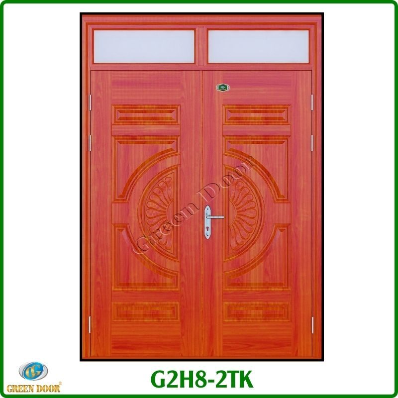 Cửa thép vân gỗ 2 cánh đều là loại cửa có kích thước 2 cánh cân đều nhau. Cửa có thể có hoặc không có thiết kế ô thoáng phía trên tùy vào ý muốn của chủ nhà hoặc do kích thước chiều cao của cửa vượt kích thước tiêu chuẩn..