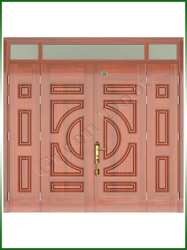 Cửa thép vân gỗ 4 cánh là loại cửa có kích thước lớn nhất trong các loại cửa và dùng làm cửa chính cho những ngôi nhà có mặt tiền rộng hay biệt thự, biệt thự liền kề,…Cửa có thể có pano, ô thoáng kính hoặc phào biệt thự Luxury ở phía trên tùy vào thẩm mỹ và ý muốn của chủ nhà hoặc do kích thước chiều cao của cửa vượt kích thước tiêu chuẩn.