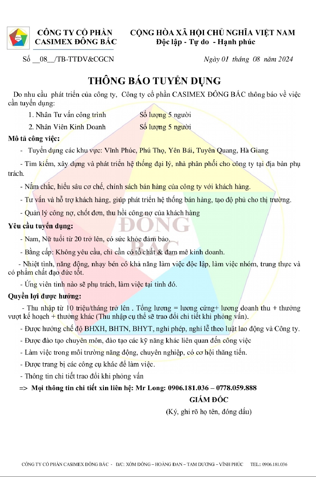 CÔNG TY CỔ PHẦN CASIMEX ĐÔNG BẮC